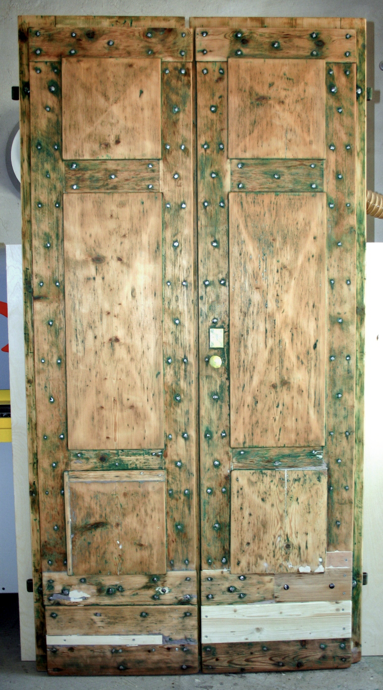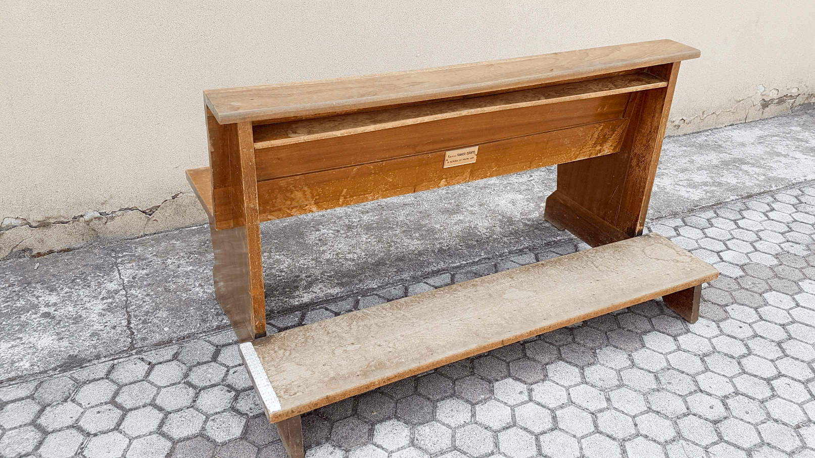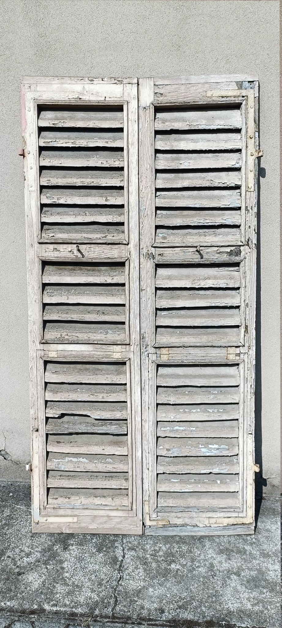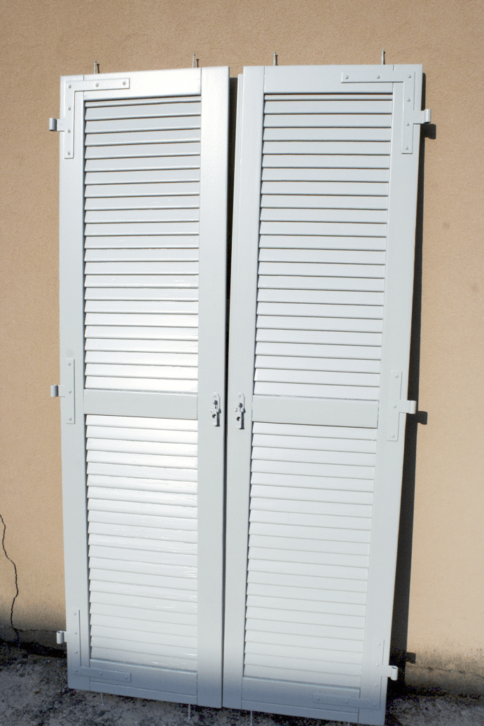 Smontaggio della ferramenta che viene pulita sgrassata e trattata con antiruggine mentre la parte in legno viene completamente carteggiata.