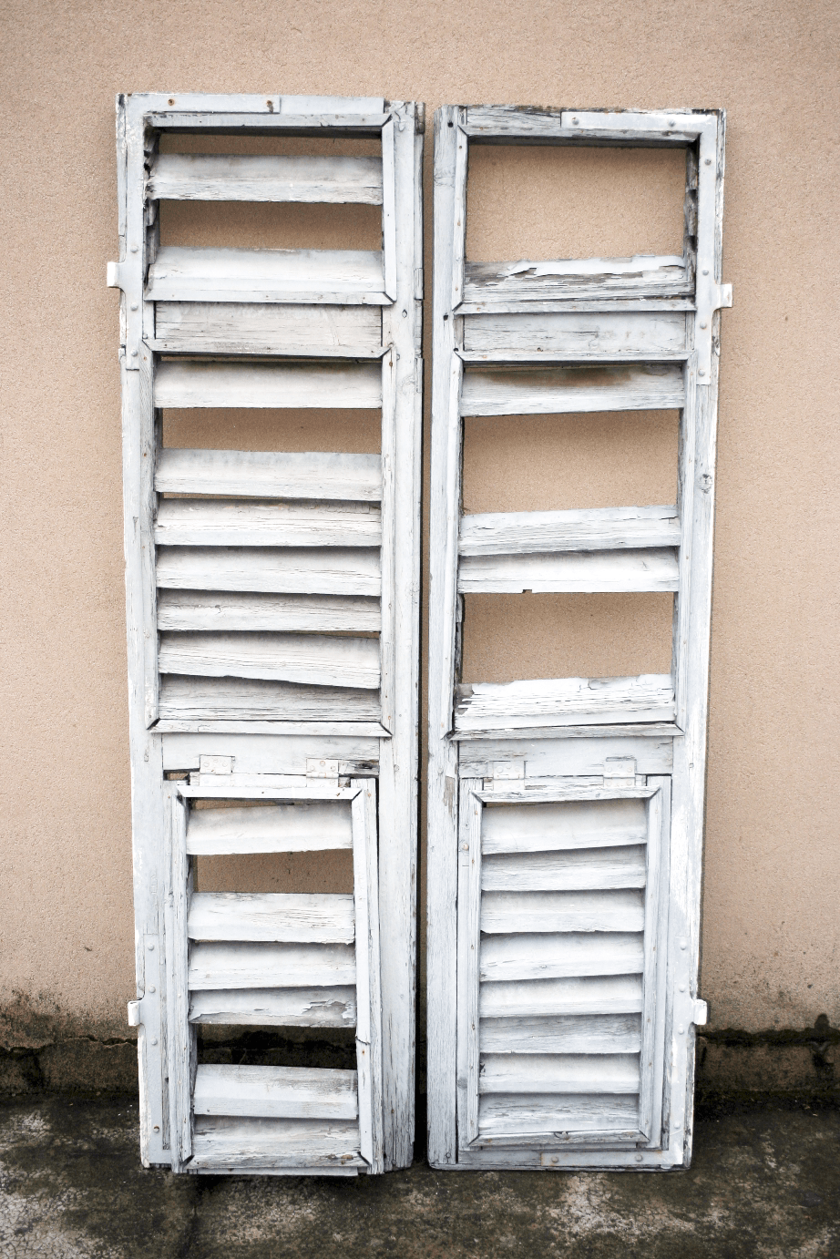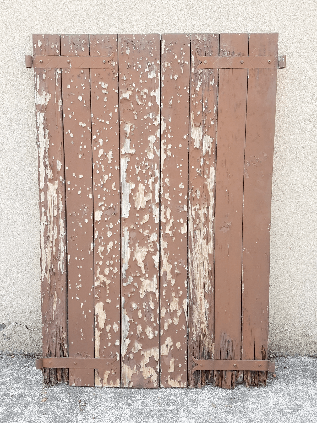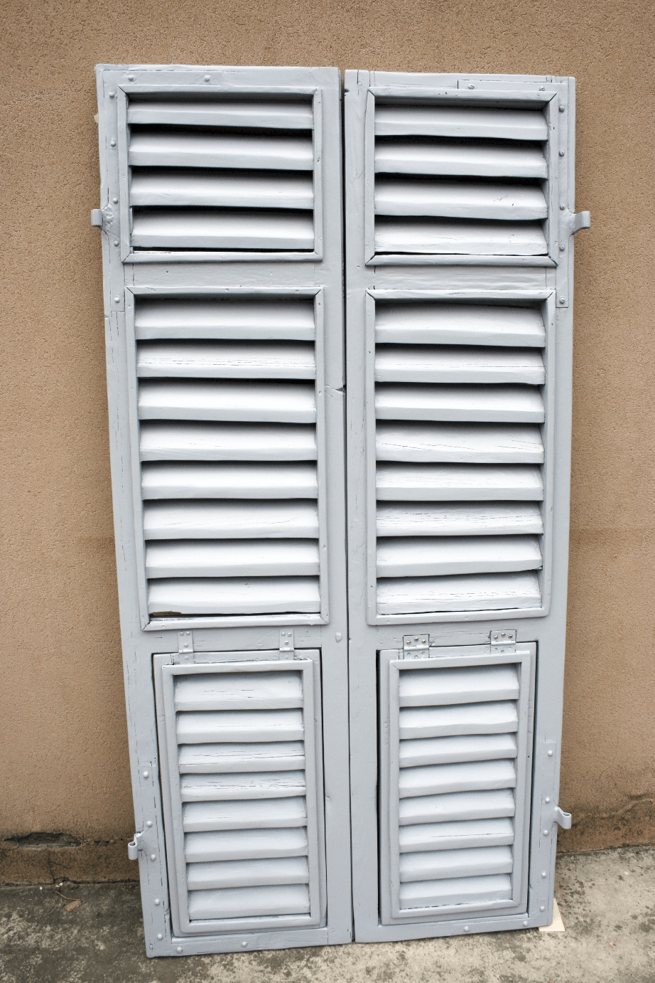 Smontaggio della ferramenta che viene pulita sgrassata e trattata con antiruggine mentre la parte in legno viene completamente carteggiata.